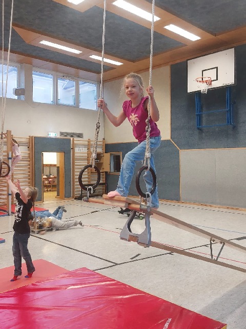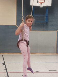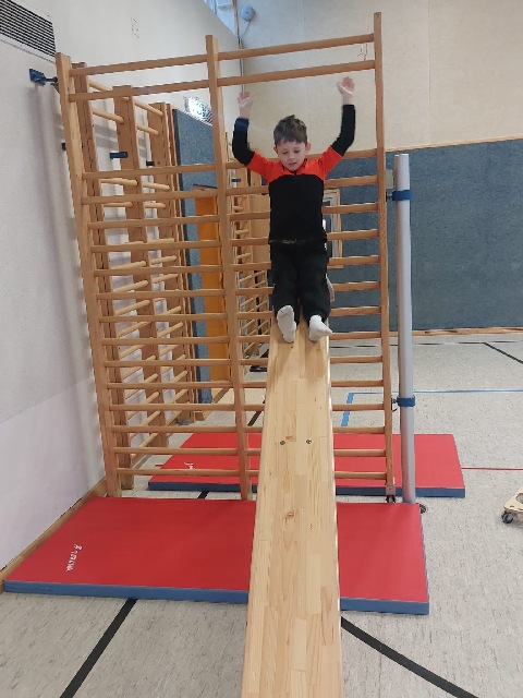 Einmal in der Woche treffen sich bewegungshungrige Schülerinnen und Schüler schon vor dem Unterricht im großen Turnsaal, um gemeinsam alle Turngeräte zu nutzen und um sich im freien Üben auszuprobieren. Kästen, Stufenbarren und Langbänke sind kein Hindernis für uns. Ringe, Gitterleiter und Taue werden mit Freude genutzt. Viel zu schnell vergehen die gemeinsamen 25 Minuten in der Früh und die Kinder können gestärkt und mobilisiert in den neuen Schultag starten.